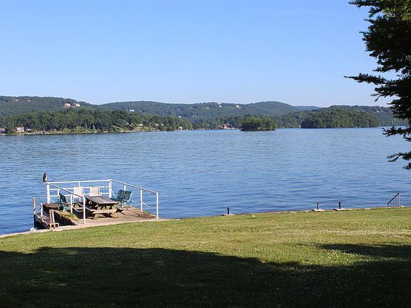Year round pleasure living by the Lake. Lots of windows invite in natural sunlight - sit on your front porch and marvel at the spectacular sunsets, this stylish home with a contemporary flair affords you vacation-like living every day! Care-free summer fun at private beach association where you can enjoy all kinds of water activity, just steps away from your home. Multiiple patios and sitting areas just outside the kitchen's door, making outdoor entertaining easy and relaxing. Generous sized eat-in kitchen with Italian style tile flooring, creates a welcoming feel; the kitchen's stone fireplace with wood-buring stove, enhances the coziness in cooler weather. Central Air keeps everyone comfortable during the warm and sunny days of summer. Over sized new windows designed to show off lake views from sizable Living and Dining rooms and two of the three bedrooms. Master Bedroom with vaulted ceiling, creating an open and airy feel, opens into spacious master bath with whirlpool tub, separate shower and water closet. Perfectly suited for every day living, with the essence of Lake Recreation surrounding you. Convenient location for NY, Hartford or Lower Fairfield County commute areas; close to shopping restaurants and boating, too. Welcome Home