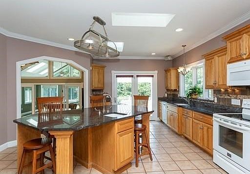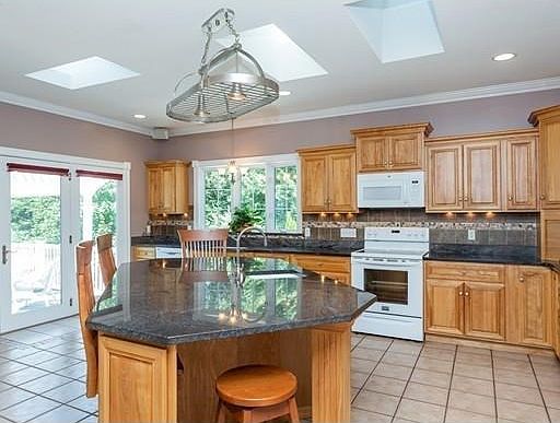 - Kit Dscrp: Countertops - Stone/Granite/Solid, Closet/Cabinets - Custom Built, Kitchen Island, French Doors, Open Floor Plan, Exterior Access, Crown Molding