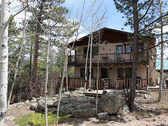 This amazing mountain home is on a Large 5.6 Acer lot in the beautiful city of Black hawk, only 55 minutes from downtown Denver and 15 minutes from Central city. Upon entering the main entrance you will see the beautiful and unique tile and wood woven flooring, an updated kitchen with amazing hickory cabinets and newer appliances. Enjoy your morning coffee on the wrap around deck with amazing views. Main floor finished off with a large family room with a beautiful wood burning fireplace that was redone with moss rock found on the property itself! Upstairs you will find the master bedroom, with an unfinished bathroom(seller is leaving the majority of fixtures and items needed to finish). The views are breathtaking, you can see the continental divide from the second bedroom. Upstairs bathroom was also updated. The property also has a natural spring on the north east side that forms a pond. This is a truly amazing home don't wait!