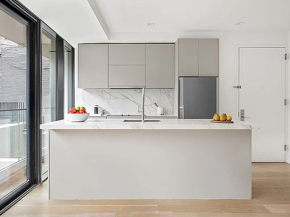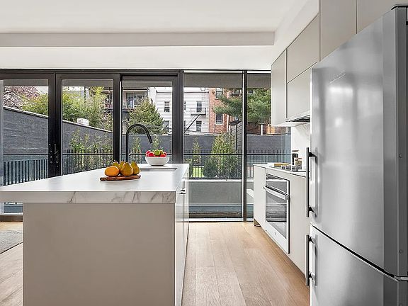 Longer term lease preferred! A vision of design, space and light, 153 Green is a striking new ground up development designed by IONA that integrates the new world into the fabric of Greenpoint. This 10-unit building comprised of 2-3 bedrooms with a mix of outdoor spaces has a striking facade with sleek glass balconies and custom curved windows by Schuco. The eye-catching interiors greet the design-savvy buyer and envelops warm interiors complete with 7" white oak flooring and floor to ceiling windows that let natural sunlight in throughout the day. The gracious sized living room integrates into the custom open kitchen with a waterfall peninsula island. Kitchens are outfitted with warm gray custom cabinetry, Neolith Calcutta countertops and backsplash, Lieber refrigerator and double freezer, GE oven with a WI-FI feature, Bosch stainless steel range with a hood that vents out and a paneled Bosch dishwasher. The kitchen and living room features a wall of windows that opens up onto your own private landscaped tranquil garden. The sleek design offers desirable indoor/outdoor living. Two spacious and bright bedrooms are separately located from the living and dining areas for complete comfort. The primary and secondary bedrooms offer over-sized south facing windows allowing natural light to stream in all day. The lower level features a massive multi-use recreation space that seamlessly opens onto a lower level terrace. On the bottom floor of the duplex there is a separate bathroom and laundry room with a stackable Bosch washer and dryer. The bathrooms were designed with different types of stone giving each bath a unique texture complimented by Pierre Pearl stone tiled flooring. Each bath features floating vanities and brushed nickel fixtures. The primary bathroom features a wall-mounted shower fixtures by Danze and Rigdon double tube wall sconces for vanity lighting and polished concrete flooring. The central HVAC system operates in zones.The building features an elevator, bike storage and an incredible roof deck spanning the whole south side of the roof with unobstructed views of The World Trade Center, the east river and iconic bridges. 153 Green is conveniently located between Franklin Street and Manhattan Avenue and surrounded by NYC green spaces like Transmitter Park, Children's Playground, McGorlick Park and McCarren Park. The G train is two blocks away on India and you'll fend the ferry the same distance on the west side of India Street along with many Citi-Bike stations and buses on every corner. The building is surrounded by a multitude of trendy restaurants, bars, coffee shops and shopping. Grocery stores are located in both directions, along with speciality markets.