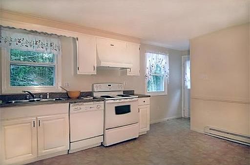 Affordable, clean, updated Ranch on .9 acres! Walk-out, full basement for future expansion. Currently offers partially-finished family room or play room with heat - just add cozy carpet! New vinyl siding 2010. New kitchen, appliances, flooring & paint in 2008. New deck 2004, new roof 2002. Brick fireplace & laminate floor in LR; spacious eat-in kitchen w/ white cabinets & appliances; side door to deck. Hall bath w/ new vanity & toilet; linen closet. MBR w/ 1/2 bath. $500 credit for MBR carpet.