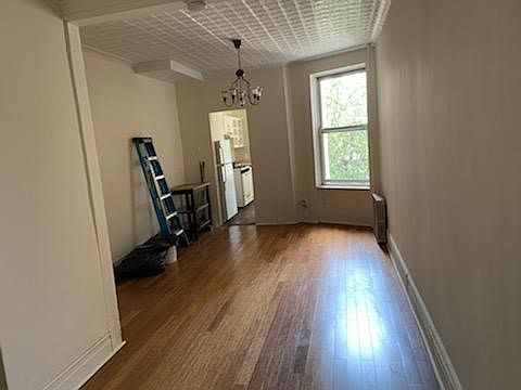 This spacious apartment is located on the second floor of a masonry townhouse on a lovely tree lined street close to all. 2 short blocks to the G train, supermarket, laundromat, shops, parks, and restaurants. Floor through apartment has two separate entrances, plenty of windows. Step into a spacious windowed living area adjoined by a galley like kitchen with window and plenty of cabinet space. Generously sized bathroom with bathtub. Hardwood floors, heat and hot water included. Please see 3D tour. 1 small pet ok. Showings for Tuesdays to Saturdays. If you need a two bedroom with windows similar to this one we have a 2 bedroom for $2600/mth on Java Street.