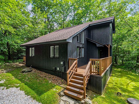 The mountains are calling and this beautifully renovated and upgraded Wintergreen getaway may be just what you've been looking for! Convenient to the slopes, Mountain Inn, and Black Rock Market, "Blackwood Chalet" is sited at the end of a cul de sac on Gumtree Drive. Currently a short term rental with stellar reviews, this home boasts a great room with vaulted ceilings that lead to a large private deck for entertaining. Two bedrooms on the main floor share a tiled bathroom. Upstairs, there is a bedroom, tiled bathroom, and a loft overlooking the great room. Seller upgrades include stainless kitchen appliances, new washer and dryer in 2024, upper and lower level mini-splits, upgraded light fixtures and exterior paint, and a new hot tub in 2023 to give your guests that quintessential aprés ski experience. Fabulously fast Firefly fiber internet for streaming. Sold furnished and ready for you to enjoy!