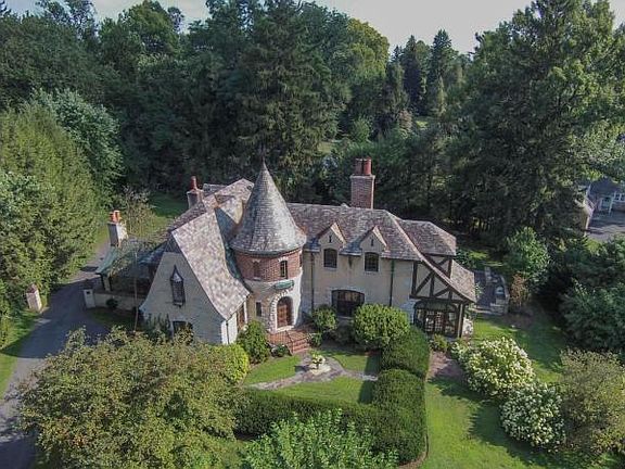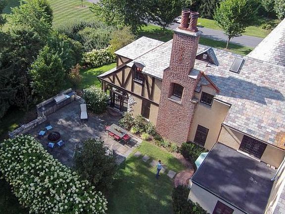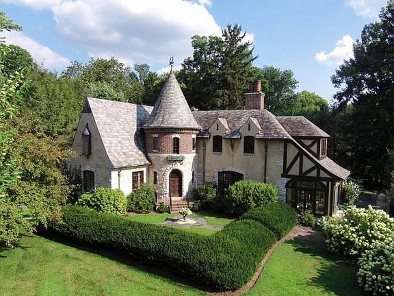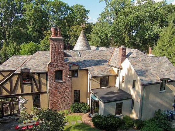 One of the most noteworthy homes in School Lane Hills. This Tudor Revival home on Hamilton Rd is one of the most unique homes in the neighborhood. It has many of the original features intact, including beautiful stained glass windows, with magnificent woodwork and ornate tile work. Enter this home through the front turret into a large entrance hall at the foot of the sweeping stairway. Underneath the stairway is a first floor powder room