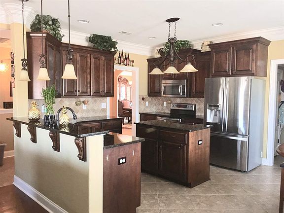 Tons of extras in and out of this full brick home. The interior boasts stainless appliances, granite counter tops,tumbled stone back splash, kitchen island, rounded sheet rock corners, tray ceilings, recessed lighting, oil rubbed bronze finishes throughout. The first floor master bedroom has a massive walk in closet, tray ceiling, and a door leading to back patio. Luxury bath with, jetted tub, dual vanity, separate water closet,and tons of natural light. Every room is over sized to accommodate large scale furniture. Outside you have a large corner lot, front and back patios, storm shelter, sprinkler system, stunning back yard with a cabana and extra concrete perfect for entertaining