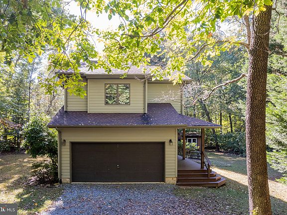 Impeccably maintained contemporary home in the desirable water-access community of Hazelmoor on the Chesapeake Bay! Upon entry through the front door, you'll be welcomed by tons of natural light, high ceilings, and hardwood floors! The cherry hardwood foyer leads to the large kitchen which opens to the dining and living rooms, complete with maple flooring. Enjoy the warmth from the cozy brick fireplace in the winter and utilize the expansive side deck and front porch in the warmer months for morning coffee or outdoor gathering. The primary bedroom is located on the second floor and includes cathedral ceilings and a massive walk-in closet. The primary bathroom has an abundance of space and is complete with a double vanity, skylight, and shower/tub combo. An additional full hall bath and two well-sized bedrooms round out the second floor. If you're in need of more storage, the unfinished basement with bilco door access is an excellent spot. Even more, the oversized shed can accommodate your other storage needs. Keep your cars out of the elements in the two-car attached garage and enjoy the additional parking spaces in the driveway for company! The water-access in Hazelmoor on the Chesapeake Bay comes complete with sandy beach, boat ramp, and picnic area! Your summers will never be the same! Recent upgrades include new Lennox HVAC (2015), new roof (2016), new well-pump (2021), and replacement of portions of fascia and freshly painted cedar siding (2021).