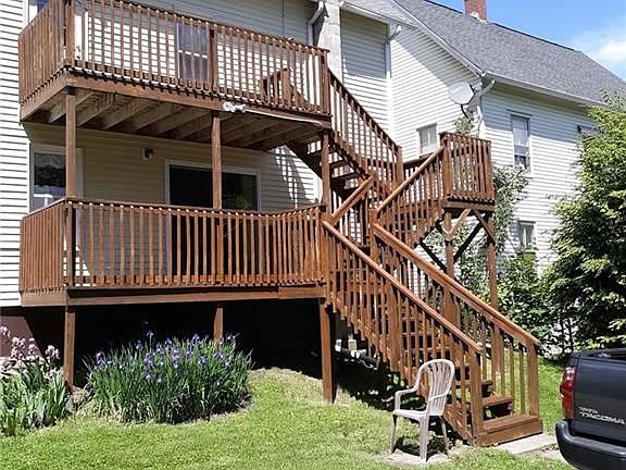 Beautiful, well kept two family meticulously maintained with loads of updates! This house shows pride of ownership! This is a must see. Fresh paint, newer bathrooms with granite, new tub, beautiful hardwood floors, new tile and vinyl floors, separate entrances, kitchens have new counter-tops and floors and a full basement with hookup for two washers/dryers. Bolt lock doors to all entrances. The 1st floor unit has a ceiling fan, beautiful bay window 5 rooms to do what you want, new sliding glass door. The 2nd floor unit has Hunter Ceiling Fan in living room, new tile and vinyl floor, beautiful bay window and a nice deck off of the kitchen to sit and enjoy the summer. Freshly stained back stairs and decks. Timer on front light and motion detectors. Walk out basement with utility room, new on demand heating unit for apt. 1, newer water heater, concrete basement newly painted. Driveway bordered by a stone wall owned by neighbor, and a large fenced in backyard with detached one car garage and/or shed. Separate utilities. A perfect chance for someone to live in one unit and rent out the other. Lots of back yard parking and a large yard to enjoy. Ref and Stove included in both units. Minutes to beaches, casinos, Mystic and shopping/dining. Close to EB, Naval base , Pfizer.