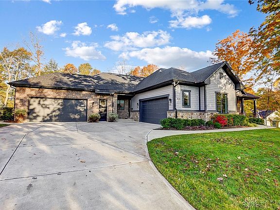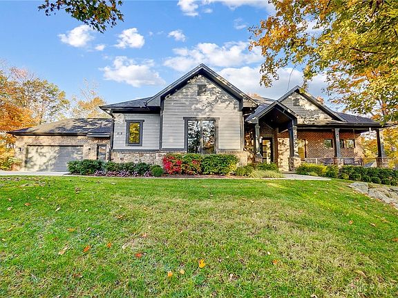Welcome to this stunning custom-built home, nestled on a private 2-acre lot in the sought after Wood Ridge Subdivision. This home features 4 bedrooms, 4.5 baths, and 4+ car garage. Enter your dream home to a show-stopping great room with breathtaking views, a stone gas fireplace, and beautiful built-ins. The entertainer’s dream kitchen boasts a huge island, high-end fixtures, soft-close cabinetry, glass feature cabinets, and a walk-in pantry, complemented by top-of-the-line stainless steel appliances. The spacious dining area seamlessly flows into the warm and cozy hearth room, with a brick wood-burning fireplace, a vaulted wood-planked ceiling, and deck access. This home also features a dedicated office with custom built-ins and a wooded view. The luxurious owner’s suite offers a serene retreat, a walk-in shower with dual shower heads, a free-standing tub, and a custom walk-in closet. Every bedroom includes a private custom ensuite with tile, high-end finishes, and walk-in closets. Convenient first-floor mudroom and laundry area off the garage with extensive storage and a full-sized refrigerator for all your extras. LOWER LEVEL expands your living space with a family area featuring a bar, pool table, and theater room. A brand-new 17x20 bonus room is ideal for a personal hobby workspace. Store all those seasonal decorations in two storage rooms, accessible from the bonus room or from garage stairs. Enjoy easy move-in with a custom lift from the garage to the lower-level storage. TWO attached garages, one with a car lift and the other with a rear garage door, perfect to accommodate 4+ vehicles and all your landscaping needs.Step outside and enjoy the expansive deck, stone firepit, fenced backyard, storage shed, and beautifully landscaped surroundings—perfect for outdoor gatherings and relaxation. Don’t miss your chance to own this wooded retreat centered perfectly between multiple local municipalities and shopping in the award-winning Beavercreek school district.