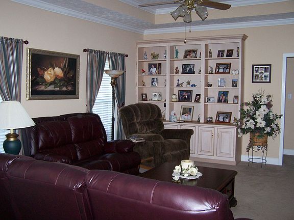 Lake Front Lot in the Columns! 3 Bedrooms, 2 Baths with Office. Split Floor Plan! Large Kitchen and Dining with Breakfast Bar, Corian Countertops & Custom Maple Cabinets! Oversized Master Suite with Jetted Tub, Separate Shower, Double Vanities and Walk-in Closet! Greatroom with Trey Ceiling, Ventless Gas Log Fireplace and Built-in Bookcase! Great View of the Lake from Deck with Hot Tub! Wired for Surround Sound with Speakers in the Master Bedroom and on the Deck! Security System, Double Garage with Storage Room for Freezer. Unfinished Basement has Workshop and plenty of Storage Space! Owner is Licensed Realtor.