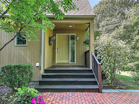 Tucked away on Howard Hill Road, near Foster Center, sits this meticulously kept contemporary home. First floor primary bedroom suite. An open floor plan, cathedral ceilings, and natural sunlight fill each room, giving you the feeling of being outdoors. First floor offers a living room with a wood stove for winter months, creating a warm, inviting atmosphere. The open kitchen and dining area allow for large gatherings. Completing the first level is a spacious family room, which can be closed off for privacy. Beautiful French doors lead out to a large deck surrounded by lush gardens and mature landscaping. The grounds offer endless possibilities for entertaining, outdoor enjoyment, gardening, or simply savoring the serene countryside. The second floor consists of 2 additional bedrooms, an office or playroom and full bath. Less than 30 minutes to Providence, where you can enjoy some of the best eateries in RI. 153 Howard Hill Road is just the right blend of contemporary style and country living with proximity to modern conveniences