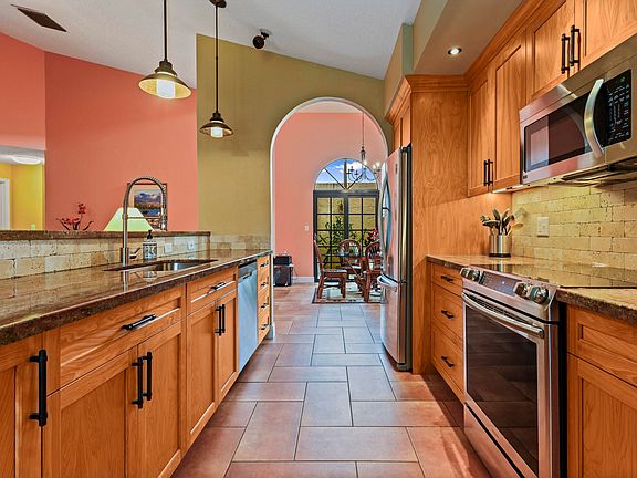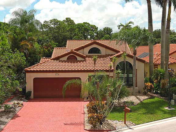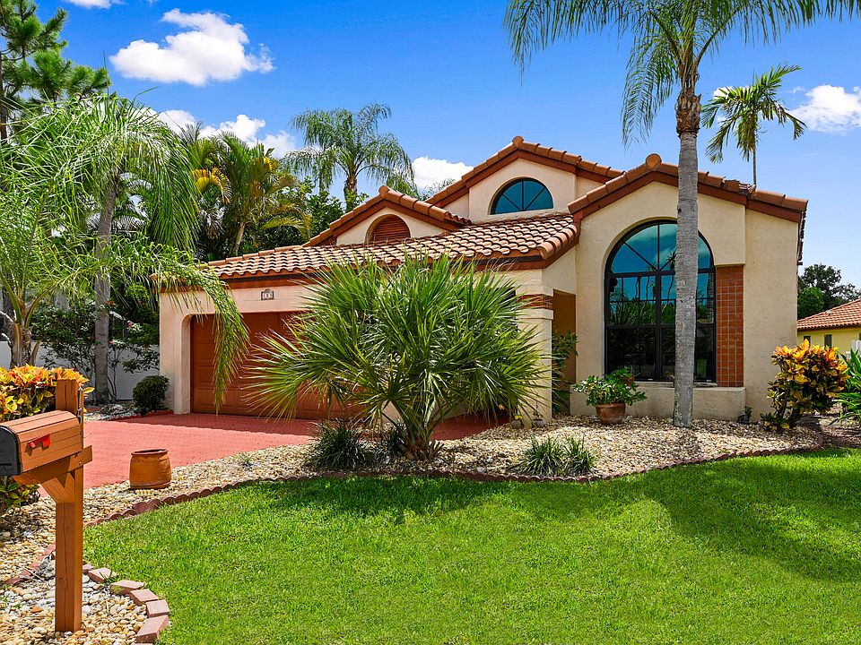 Spectacular updated 3-bedroom, 2 1/2-bathroom, 2-car garage waterfront Mediterranean-styled home in the gated community of River Bridge. Impact windows and doors in main structure, plus a new hurricane-rated Entry door with rain glass design. Beautifully remodeled kitchen with breakfast nook, open floor plan, Vaulted ceilings. Expansive lanai on the north side of the home boasts excellent cross breezes and a view of the water. Lanai windows are plexi-glass rated for winds around 100 mph. Roof - 2013. A/C system & Water Heater replaced in 2019. Primary Suite has a separate entrance to lanai and a walk-in closet, the bathroom has two vanities, a jetted bathtub, and a separate walk-in shower. Stainless steel appliances in the custom kitchen are less than 5 years old plus granite countertops. Step through the front door into the combined living room and dining room. The dining room is adjacent to the atrium. The open kitchen overlooks the family room. This home was made for entertaining and has a great flow. Lots of special touches. Beautiful red birch cabinets. Lanai roof was replaced in 2022. All 3 toilets replaced in the last 5 years. New lighting & ceiling fans throughout. CBS construction, 1,638 square feet under air and 2,311 square feet total including patio and garage. The quarterly HOA maintenance fee of $971 includes fiber optic cable, lawn care and access to all amenities! River Bridge is a gated community with wonderful and extensive amenities: monthly socials, seasonal programs including live entertainment, two pool areas, hot tub, fitness room, billiards, tennis, pickleball, basketball, Bocci, Shuffleboard, Tot Lot and walking paths. There is a full-time social director and on-site property manager. Buyer pays a Capital contribution due to River Bridge Master Association at closing. Very Close to Okeeheelee Park and the Village of Wellington.