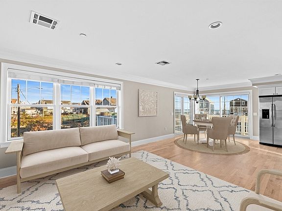 Indulge in the ultimate coastal lifestyle with this corner townhome, boasting over 1,800 SF of luxurious living space and ocean views. The open floor plan is a masterpiece of design, featuring high-end finishes throughout, including a chic white kitchen adorned with granite countertops, and SS appliances. Host gatherings effortlessly on the expansive deck that flawlessly integrates the living room, dining, and kitchen areas, creating a seamless flow for entertaining. The primary suite is a sanctuary of comfort, offering double vanity sinks and a walk-in shower, while the guest bedroom provides its own ensuite bath and spacious walk-in closet for ultimate convenience. Unwind on two private decks, perfect for enjoying the sunsets. Ideally situated near the vibrant Scituate Harbor, this home offers easy access to an array of dining, shopping, and beaches, making it an ideal choice for year-round living or a serene summer retreat. Discover unparalleled comfort in this remarkable residence.