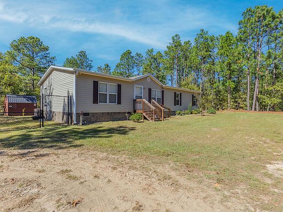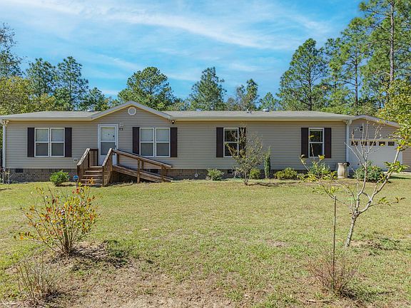 This wonderful, open floor plan double-wide manufactured home sits on a permanent foundation on 8.51 acres of private, secluded land. The spacious kitchen features a large island, perfect for cooking and entertaining, while the split plan layout offers added privacy. The property includes an 864 sq ft garage, perimeter fencing, and a fenced 1-acre backyard—ideal for furry friends to roam safely. Enjoy the abundance of fruit trees and bushes scattered throughout the property. Ramps to both the front and back doors provide easy access, and two sheds convey with the property for extra storage. This is a peaceful and spacious retreat with plenty of natural beauty. Owner is related to agent.