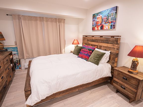 This is a newly refreshed 713 square foot loft one bedroom less than 300m from the Village--the Gondola to Canyon and Eagle Lodge, Shuttles to Tamarack Cross-Country Lodge, and the Red Lines that will take you directly to the Main Lodge and the Gondola to the top. The kitchen boasts custom quartz countertops, modern cabinetry and appliances and is fully equipped. The living rooms and bedrooms both have Roku TV, Sonos sound bars and Enterprise WiF covers the entire unit. The upstairs enclosed loft bedroom has a memory foam queen bed, as well as a second queen memory foam floor mattress that is perfect for young kids. Downstairs, the sleeper sofa contains a queen and a second twin mattress running perpendicular,, and we include down comforters, memory foam pillows, and high quality linens for four beds. You can comfortably sleep a family with little kids in the bedroom + bunk room, or a group of friends. You can put smaller guests in the bunk room to sleep four without invading the common area. Or use the two memory foam sleeper sofas in the living room. For 4 month ski lease, cost is $4000/mo and owner will continue to pay utilities and internet. For yearly lease, cost is $2600/mo and tenant to pay for utilities and internet.