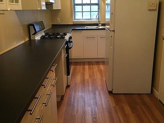 Brighton-Towne Estates Condominium , 832 square foot 2 bed/1 bath unit with 2 assigned outdoor parking spaces close to the entry door. Features include a recently renovated kitchen with white cabinetry, combined living/dining room and each bedroom will accommodate a queen size bed. The unit has central AC, and is carpeted. There is common laundry and an outdoor swimming pool is included in the rent. Convenient to MA Pike, public transportation and Brighton center.