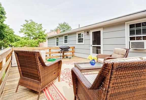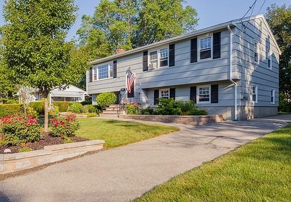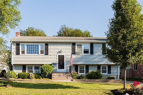 First SHOWINGS Saturday 11-1!!Gorgeous Raised Ranch on a dead end street.Great Neighborhood!Wonderfully maintained 3 bedroom / 2 full bath, Living room boasts large picture window, and gleaming hardwood floors . Hardwood flooring throughout most of main level . Large Deck overlooks private yard. Close to shops, T station, and country club. Large, fenced back yard and a front yard with gorgeous stone walls surrounding flower and shrubbery gardens. The back deck has been newly re-surfaced and beneath the deck is an extra-large, dry storage area with lockable door.How about a possible fourth bedroom or playroom downstairs which also has an office with a floor-to-ceiling fireplace, a full bathroom ,and a room with kitchen cabinets and double-sink countertops and gas-line connectivity.
