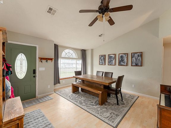 This spacious floor plan is the one you have been waiting for! With high vaulted ceilings and an open concept this home is perfect for every occasion. Updated kitchen with open eating bar, pantry, updated stainless steel appliances and tons of storage space. Formal dining room for hosting holidays, family dinners or game nights. 4 bedrooms which includes a large room/bonus room. Primary features a walk-in closet and on-suite. This charming home has a large living space open to the back yard with a covered concrete patio for your backyard barbecues with a view! Fully fenced back yard with a buffer of land that creates more privacy or could offer you the room to expand. Raised garden beds. New roof in 2018. New HVAC in 2023. RV Parking. Storage shed and lean-to. You do not want to miss this house!