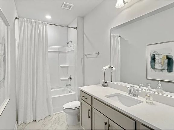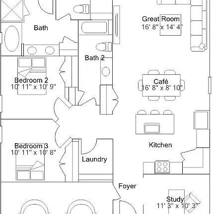 This new single-story homes enjoys a convenient layout with room to grow. An open-concept layout seamlessly connects the kitchen with the living and dining areas, with an inviting covered porch offering the best of outdoor living. A versatile study can be found off the foyer, the ideal place for a studio or home office. Three bedrooms are discreetly placed to the side of the home, including the expansive owner's suite, nestled into a private corner for optimal privacy. Homeowners have access to an assortment of onsite amenities, including a state-of-the-art clubhouse, swimming pool, splash park, playground and pickleball courts designed to offer tons of recreational fun.