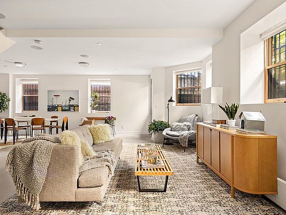 Set on one of North Park Slope's most desirable blocks-just off 7th Avenue and moments from Prospect Park-this three-bedroom, three-bathroom home has been thoughtfully renovated by its current owners to combine timeless architectural charm with the ease of modern living. The grand, freestanding mansion was converted into just ten condominiums in 2009, and Unit 1D enjoys a uniquely special position at the back of the building, with light pouring in from three different exposures and nine oversized windows in the generous living room. A second floor with three spacious bedrooms, including an enormous primary suite, generous laundry room, and central AC throughout complete the townhouse vibe.