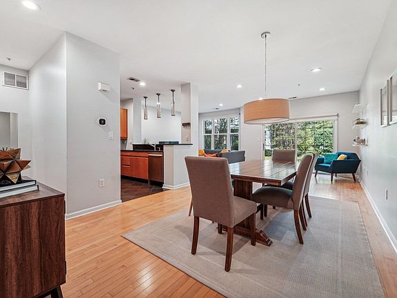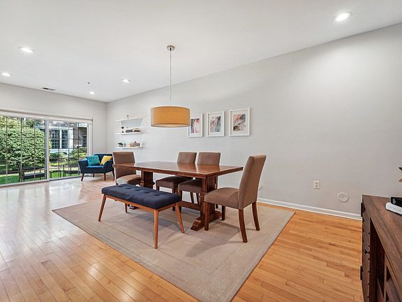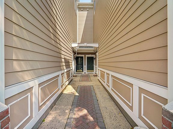Sought after Bulls Ferry Bergen style home!! Loaded with upgrades! Great location next to guest parking, main swimming pool, playground and management office! Entering from the foyer, an open living, dining and kitchen area leads to double glass sliding doors with a private patio. Galley kitchen with granite counters, custom backsplash and stainless steel appliances. California closets and added shelving throughout. Stunning wood floors throughout; sound proofing on second floor. Custom lighting. Sumptuous master suite with a balcony and large walk-in closet. Beautifully renovated master bathroom. Second bathroom-featuring Porcelanosa tiles and vanity . Dedicated built-in office space. Newer washer and dryer. Parking for two cars; one in private garage with shelving, and one in driveway. Community boasts two outdoor pools with Jacuzzis, play ground, waterfront promenade and free shuttle to ferry and light rail. Steps to 158 bus to NYC. Close to restaurants and shopping. Must see!