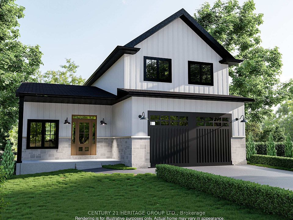 Don't miss this opportunity to move into this brand new, custom built Modern Farmhouse that is full of upgrades and thoughtfully designed with no detail spared. Set on an oversized 50x175 ft lot, it will feature a double car garage and quality modern finishes throughout. This bright 4- bedroom, 3-bathroom home offers an ideal layout for family living. The main floor showcases upgraded hardwood flooring, a private home office, powder room, a cozy fireplace, lots of natural light and a custom large kitchen. This Kitchen is complete with a large island, quartz countertops, and upgraded elegant shaker-style cabinetry with custom crown moulding that extends to the ceiling for a refined finish. A convenient pantry and spacious mudroom with garage and basement access complete the main level. Upstairs, all four bedrooms include walk-in closets, a conveniently located laundry room and shared bathroom. The primary bedroom showcases his and hers walk-in closets and a 4 pc ensuite. The bright unfinished walk-out basement features large windows and bathroom and kitchen rough-ins, providing endless potential for future living space with excess storage. Completion set for Fall 2025, there's still time to choose from the builder's selection of finishes to suit your personal style. Located in a quiet, family-friendly community close to parks, schools, and local amenities. This is your opportunity to make a truly custom home your own!