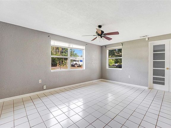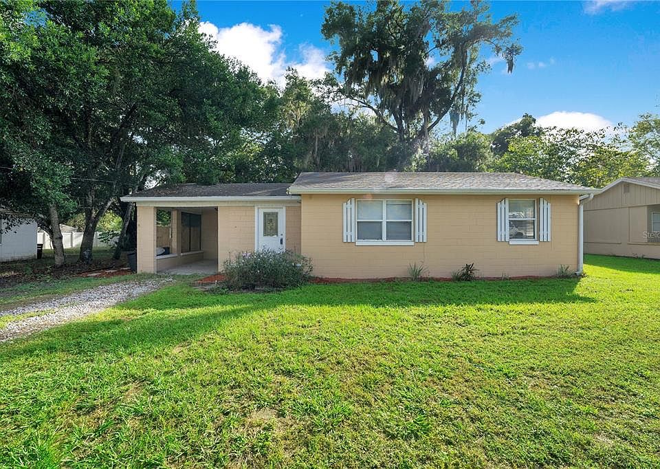 This beautiful bungalow is located in a great location in Debary! You are minutes away from restaurants, shops, as well as 10 minutes away from the Sanford Zoo and the Sanford historic district. Upon entering the home, you are welcomed with beautiful French doors leading into the main living room. The entryway provides a flex space area that would be perfect for a home office! The home features 2 bedrooms, 1 full bathroom with tile and vinyl floors throughout. The spacious family room has tons of natural light and flows right into the kitchen- perfect for entertaining. The utility room is located just off the carport. The home has a HUGE backyard and NO HOA so the sky is the limit for this backyard and property. The home has been freshly painted, and has updated blinds. Come view this today!
