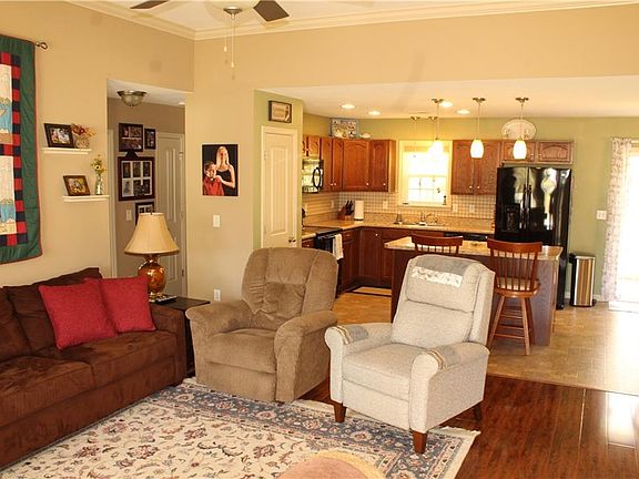 Sharp as a tack one level home that's been meticulously cared for. This one level 3 Bedroom/2 Bath home boasts a wonderful open floor plan design with large island kitchen that beams with natural light. The split design offers a large master suite just off the dining area; featuring a walk-in shower and walk-in closet. Just off the living room, you will also find 2 additional guest bedrooms and a full bath in the between. This lot and exterior are to die for with a level yard which is beautified by it's charming Maple tree, cozy front porch, and sprawling concrete rear patio to enjoy the serenity of the quiet back yard. The lot consists of .91 acres and sprawls deep into the tree line bordered by a creek; making this the perfect place to play hide and seek or just to have a nice stroll. The convenience of having no entry steps, level lot, spacious garage, large laundry room and a tankless water heater all the more reasons to snatch this home before it's too late.