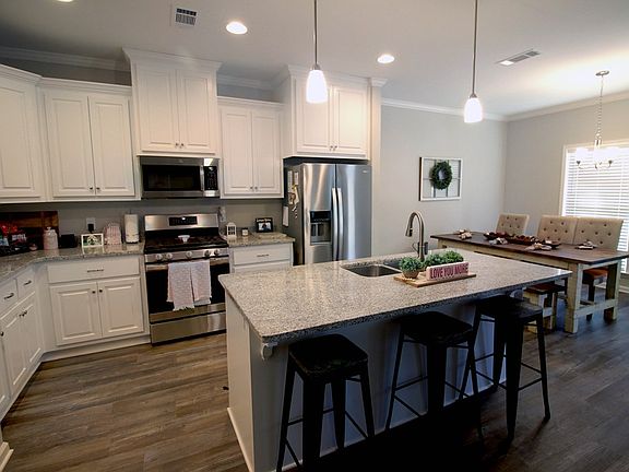 Beautiful painted brick home in a nice gated community, Reflections on the Water. Home designed w/ large open concept living, kit., dining area. Granite countertops & island in kit. Dining area opens to partially covered patio. LVP flooring in living areas,. Like new carpet in BRS. Owner's bath w/ dbl vanities, soaking tub, sep. shower. Large walk-in closet. Large inside laundry. New privacy fence
