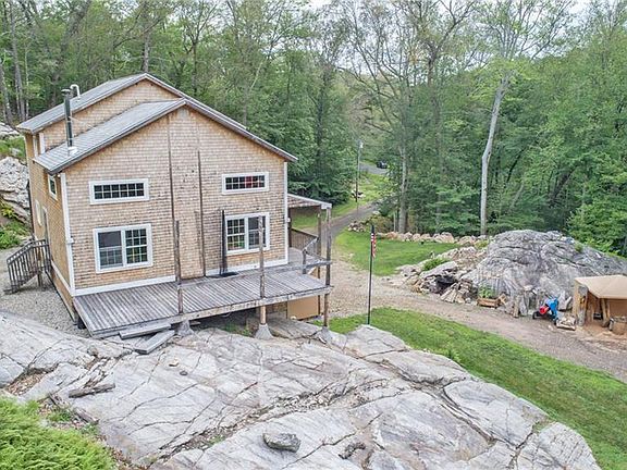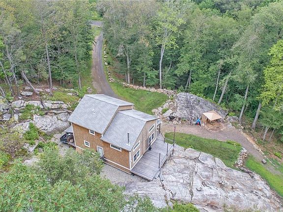 Very unique home situated on 12.57 Acres in Portland. Feel like you are on vacation in Vermont every day! Completely private and surrounded by woods, this property also borders the Airline Trail! Built in 2008 with radiant floor heating fueled by Natural Gas! 2 Car Garage under with impressive workshop. Wrap around deck to enjoy nature near the impressive rock outcroppings! First floor has a bedroom and full bath, laundry, kitchen, dining area and living room with cathedral ceiling. Upstairs has the master bedroom suite and den. Words can't describe how special this property is. It must be seen to be appreciated!