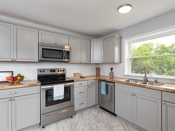 Newly renovated! Updates include new bathrooms, kitchen, flooring, paint, heating & cooling, light fixtures, and plumbing. Don't miss the MAN CAVE in detached garage with private bathroom. Square feet is approximate.