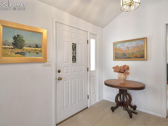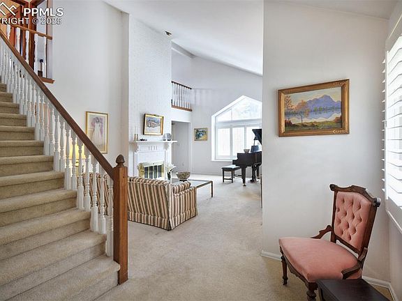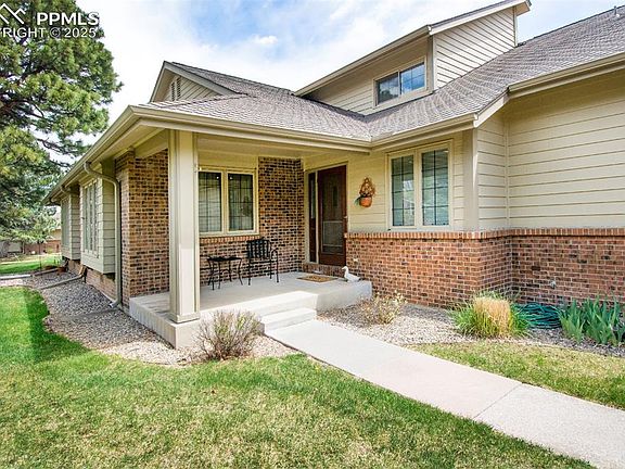 Welcome to this stunning end-unit townhouse nestled in the desirable Spring Lake neighborhood. From the moment you step inside, you’ll be captivated by soaring vaulted ceilings, an expansive living room, and a cozy wood-burning fireplace—perfect for relaxing or entertaining. The kitchen features granite counter-tops, ample cabinetry, and a charming breakfast nook. Just off the kitchen, the formal dining room provides an ideal space for hosting and opens to a covered patio with breathtaking views of Cheyenne Mountain and the surrounding lush green space. The main-level master offers his-and-hers closets, an elegant 5-piece bathroom, and abundant natural light. Upstairs, you’ll find two spacious bedrooms and a full bath with a tub/shower combo. The north facing bedroom offers vaulted ceiling and includes plenty of closet space. The South facing bedroom also includes vaulted ceilings as well as a wood burning fireplace and custom built in cabinets. The finished basement offers even more living space, with a large family room, two additional bedrooms, and a bathroom with a standalone shower. The over-sized two-car garage provides ample space for a workbench or extra storage. Located in award-winning District 12 and just minutes from the Broadmoor, this exceptional home offers the perfect blend of comfort, style, and convenience. Don’t miss the opportunity to make it yours today!