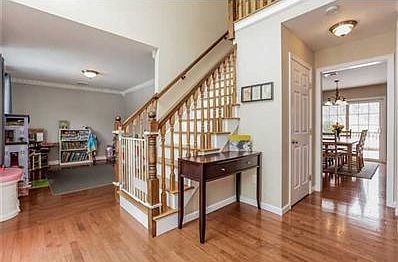 Great open floor plan,fully applianced kitchen,stainless appliances,center isle,new granite countertops,hardwood floors on the main level,master bedroom suite with new hardwood floors,fenced level backyard with playscape,natural gas,cair,city water&sewers