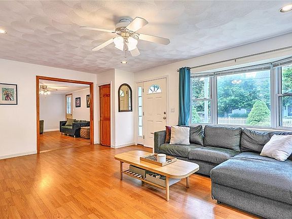 Perfect proximity to Narragansett Bay is yours in this 3 to 4-bedroom, 3-bath home with more than 2,700 sq. ft. of living space. One block from the waterfront, its delightful front porch, enclosed sunroom, and fenced-in backyard with a deck and 2 bonus sheds all lend engaging spaces for indoor-outdoor living. Two first-floor, ensuite bedrooms allow for an easy one-level lifestyle. Begin at the inviting living room with sun-filled picture windows, warm hardwood floors, a romantic fireplace, and crisp crown molding, followed by a pleasing dining room and nearby den. A granite and maple eat-in kitchen, updated in 2017, provides stainless appliances and a convenient laundry area. Upstairs, discover a cathedral-ceiling great room plus 1 to 2 bedrooms with 3-bedroom septic. A one-car garage, central air, and a house generator hookup are the pleasing finishes to this coastal gem. Walk down the street to the bike path or to one of three saltwater beaches for boating, fishing, and swimming. Wickford Harbor charms with seaside views. Find gentle surf at North Kingstown Beach and a farmers market at Goddard Memorial Park. In 30 minutes, access the Providence train station along with nightlife. No flood insurance needed. Boat moorings possible.
