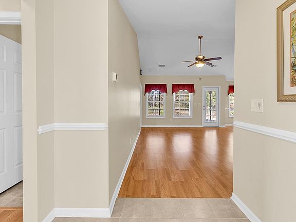 SOME PHOTOS HAVE BEEN VIRTUALLY STAGED!! Introducing this charming three-bedroom, two-bathroom home with a two-car garage, located in the vibrant 55-plus Myrtle Trace Grande community. As you arrive at 153 Myrtle Grande Drive, you'll be greeted by excellent curb appeal, featuring professional landscaping and curbing. Upon entering through the full storm door, you'll find yourself in the foyer. To your left, there are two generously sized bedrooms and the main bathroom. The living room boasts ample windows that allow for plenty of natural light. The primary bedroom, located at the back of the home, features a tray ceiling, additional windows for natural light, and a walk-in closet. The primary bathroom includes a walk-in shower, a tub, and a double vanity. The kitchen comes fully equipped with all appliances, a pantry, and a dining area. Notable upgrades include 42" maple cabinets, gutters with helmets, a fenced-in backyard, roof replaced in 2023, HVAC system replaced in 2017, and water heater replaced in 2022. After a long day, unwind in the inviting screened-in porch that offers a lovely view of the woods. The lot does go back into the conservation area.