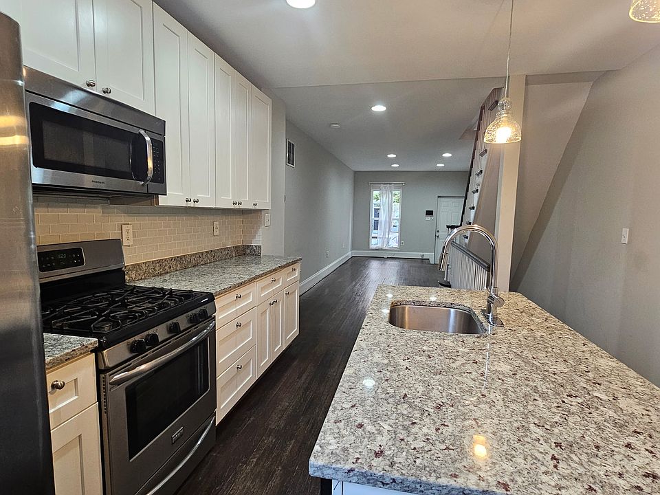 12 month lease only - Tenant pays all utilities NO RECENT LATE PAYMENTS (INCLUDING CREDIT CARDS, AUTO LOANS, ANY LOAN) OR EVICTIONS IN THE LAST 3 YEARS. If your credit is low due to anything farther in the past, school loans, or because of lack of credit, we will consider your application. Welcome to this charming 2-bedroom, 2-bath home with a fully finished basement, offering plenty of space and comfort. The main level is highlighted by gleaming hardwood floors and elegant recessed lighting, creating a bright and welcoming atmosphere. The kitchen is both stylish and functional, featuring sleek stainless steel appliances, granite countertops, and a convenient center island perfect for cooking or gathering with friends. Upstairs, the bedrooms are filled with natural light, while the primary suite includes a spacious en-suite bath with a dual vanity for added convenience. Step outside to your private patio, ideal for relaxing outdoors, entertaining, or even doubling as parking when needed. For everyday ease, the home also comes with an in-unit washer and dryer. Stay comfortable year-round with central air conditioning, and bring your furry friends along pets are considered on a case-by-case basis.