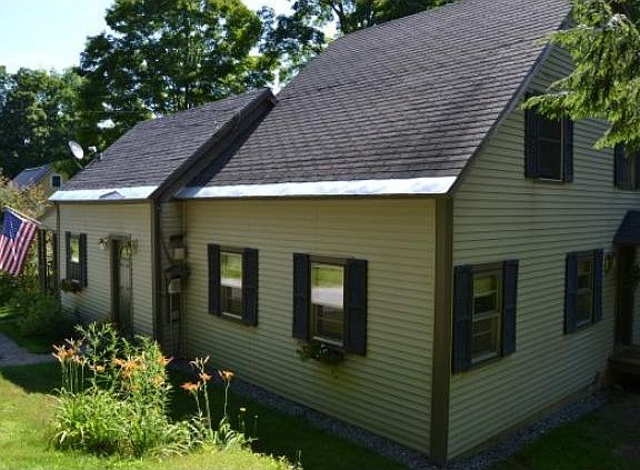 Picture Book New England Cape. Master Bedroom with slider to Deck, 5 person hot tub. Well landscaped with perennial Gardens. Lovely covered Porch. Large Updated Kitchen with breakfast bar. open to dining area Lovely foyer entrance to LR. 3 BR up Remodeled first floor bath. Laundry in lower level Both Gas and Oil heat See disclosures for other upgrades. Also has natural dammed swimming hole/pool use to be pool to an Old country InnMove in condition Don't wait