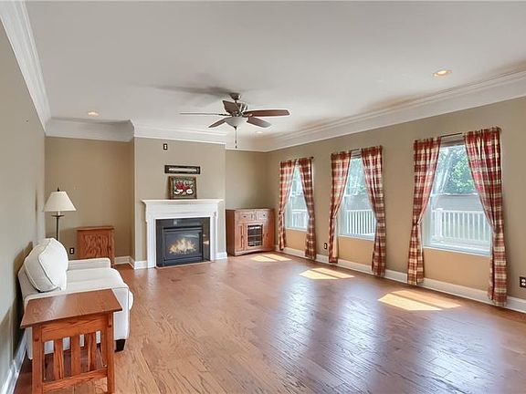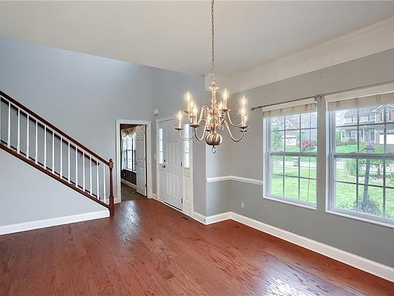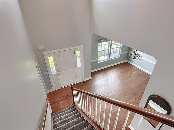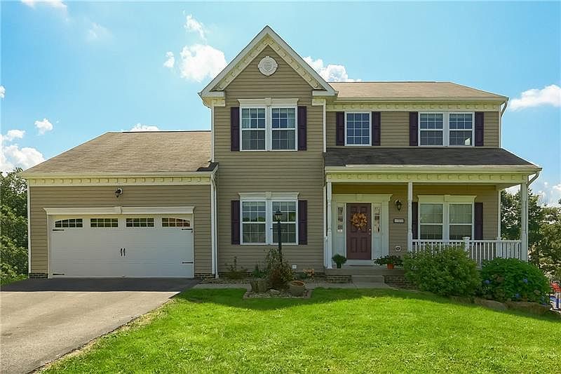 Privacy awaits in this 5 bedrm home nestled on park-like tree lined lot.Covered front porch greets you upon arrival.The welcoming 2 story foyer opens to bright & spacious floor plan flooded with natural light & wide plank hardwd floors throughout main floor living space.Family rm has wall of windows,gas fireplace & opens to Eat-in kitchen.Fully equipped kitchen has plentiful cabinet space,2 separate sinks,& S.S. appliances.All season rm adds additional entertaining space with stunning views.Formal dining rm for holiday meals or optional living rm.First floor master with en-suite,Dual closets,dual sink vanity,tiled shower/separate soaking tub.Main fl powder rm & laundry rm complete the main fl.Upstairs offers 4 sizable bedrms with loads of closet space & ceiling fan/light combo.Full hallway bathrm & linen closet.Huge lower level is a blank canvas & ready for your finishing touches.Walk out to rear covered patio!Enjoy warm days on your maintenance free deck that steps down to rear yard.