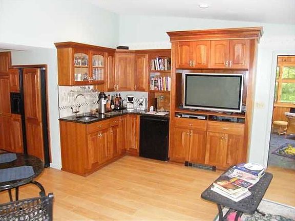 This handsome gambrel Colonial is nestled on a level lot in a nice neighborhood close to Lake Bashan and the nature preserve. The home boasts spacious room sizes and generous storage. The first floor of the home features the foyer, a living room with propane fireplace, dining room, family room, and remodeled eat-in kitchen with granite counters, an office, a three season sunroom with vaulted ceiling with propane fireplace, and a guest powder room.The second level features the master bedroom with woodstove and walk-in closet, one additional bedroom, and one full bathroom.The home is complete with a full partially finished basement, a deck overlooking the private back yard, and an attached two car garage. The property features beautiful perennial gardens and a fenced back yard with two garden sheds.