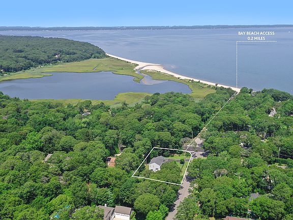This home is just a moment away from one of the best bay beaches in the Hamptons - East Landing offers endless experiences to enjoy, such as 4th of July fireworks, bonfires with loved ones, clamming and bird watching, or just a good old traditional day at the beach, relaxing waterside while the bay waves crash at your feet. Only .2 miles from the front door, this breathtaking beach paradise is yours to enjoy! The beautifully crafted home is newly built by the renowned Hamptons luxury construction company, Paramount Development Group. The elegant residence offers 10' ceilings and 2,000 +/- sq. ft. of thoughtfully designed living and entertaining space with 4 bedrooms, 2.5 baths, and an attached 2-car garage. Inside, a meticulously maintained interior features an open-concept layout, including a light-filled living room with a fireplace focal point and an eat-in kitchen outfitted with stainless steel appliances. The bedrooms are generous in size and are all located on the second floor, including the primary bedroom, which offers space for a king bed and an oversized custom walk-in closet. The home features noteworthy hardwood floors and upgraded designer lighting throughout, including in the primary closet, making it very inviting. Last but not least - the unfinished lower level with impressive 12' ceilings is quite memorable. Reimagine the space as more living space, or better yet, a pool house function if you decide to add a pool! Start your day with coffee on the front porch, and unwind in the evening on the charming side patio with pergola-perfect for catching bay breezes in a private, tree-lined corner of the property. There's ample room for a pool, surrounded by mature evergreens for added serenity. The friendly hamlet of Hampton Bays is known for being a beautiful and active year-round. You're surrounded by some of the most desirable ocean and bay beaches the Hamptons has to offer, and you will have access to arguably the most waterfront dining of anywhere in the Hamptons. The location is also convenient to neighboring Westhampton and Southampton villages.