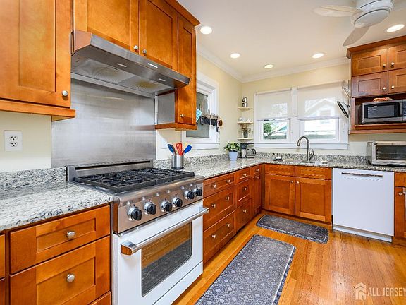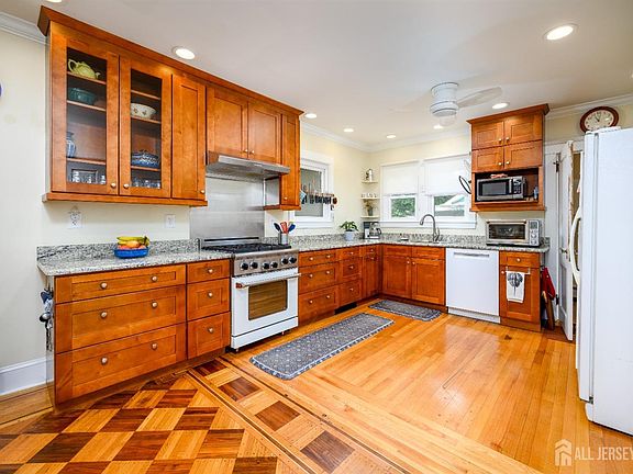 Welcome to New Brunswick's best kept secret! This meticulously maintained Dutch Colonial home sits on an oversized corner lot with an exterior building, fenced yard, off-street parking and mature landscaping for privacy. Leave the bustle of city and campus life at the door and step inside the center hall to marvel at the historic charm of gleaming, original hardwood floors with parquet and inlaid borders throughout the first floor. French doors lead into the spacious living room with a wood-burning fireplace and into a stunning sunroom. The updated, entertainer's kitchen features granite countertops, professional range and hood, pantry, and recessed lighting. The dining area can accommodate large gatherings. A mudroom and powder room are convenient at the back of the hall. Upstairs, there are four bedrooms and a full bath. Take the stairs to the third floor attic level with two additional heated rooms and storage closet. The basement boasts high ceilings, laundry facilities, room for recreational activities, and access to the yard via Bilco door. This property is an exceptional opportunity for the savvy buyer. Bring your ideas to take this century-old home into its next phase. Numerous upgrades include zoned heating system with smart thermostats, roof, insulation, 200-amp electric, double pane windows, Ring cameras, and Ethernet cable on all levels. Plumbing has been run to an upstairs bedroom to make it easy to convert into an additional full bath to create a primary suite if desired. The garage with screened porch has been finished with sliding door, A/C and overhead lighting. Potential uses include office, gym, art studio or workshop. Located directly across the street from the Cook / Douglass campus of Rutgers University and convenient to NJ Transit, NJ Turnpike and all major roadways. Enjoy easy access to New Brunswick's vibrant restaurants and cultural institutions, the Raritan River and nearby parks.