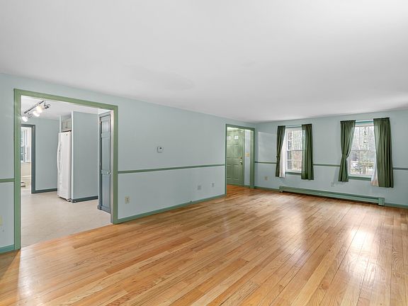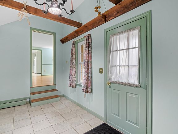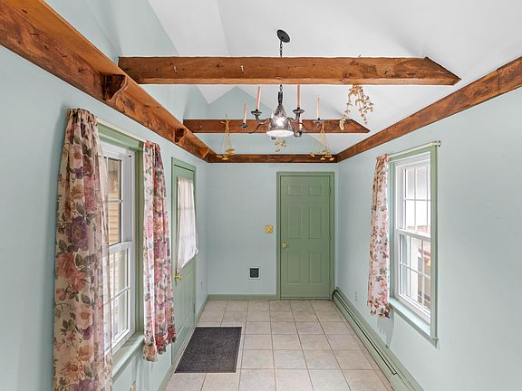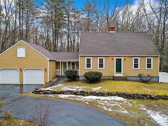 Preinspected and ready for a clean, quick close! Setback from the road on a private lot, this cape-style home is surrounded by woods, but remains within easy access to route 16 and shopping.The attached garage offers high ceilings with storage above, promising ample space for storage with easy access via stairs. A large breezeway connects the garage to the house, seamlessly blending functionality with charm in the form of a cute covered porch. Step inside to discover a front-to-back living room where oak flooring adds warmth to the space. Adjacent, a three-season room invites relaxation and enjoyment of the surrounding natural beauty in the warmer months. The heart of the home, an updated kitchen, features modern tile and new cabinets. A separate dining room, also with oak flooring, offers a formal space for meals and gatherings. The first level is completed with a 3/4 bath, presenting the potential for single-floor living if you were to convert the dining room. Upstairs, you will find three generously sized bedrooms and a full bath. The semi-finished basement, equipped with a wood stove, provides an alternative heating source, adds to the home's cozy ambiance, and provides extra space for recreation. Outside, the fully fenced-in backyard is level and waiting for your furry friends! Showings start at the Open House, Saturday, 3/2 12-2