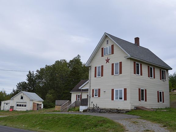 A family farmhouse with many upgrades sits in a private and peaceful setting surrounded by mature trees and a beautiful view! Lots of room in this 5 bed 2 full bath house. Third floor boasts a master suite with walk in closet, large full bath, and a view. Second floor has four bedrooms and full bath with jetted tub. Second and third floor were totally refurbished in 2007, newer appliances include stove (2 years), microwave, refrigerator (18 months), and dishwasher (18 months). It also has a new water tank. Lots of room for expansion, has two out buildings (including a garage with chicken coop) that need some work - perfect for a handyman. First floor includes large eat-in kitchen, living room, and office/playroom/bedroom. Close to trails! Come on up to Northern Maine to enjoy some ATV, snowmobiling, hunting, and fishing! MOTIVATED SELLERS!