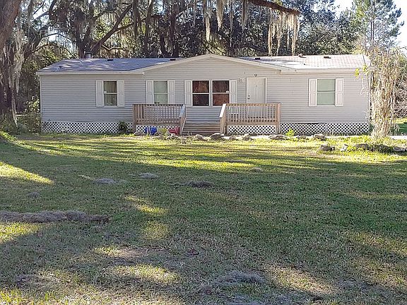 Well maintained Palm Harbor double wide on approximately 8 acres in the country! Five minutes from Walmart and shopping. 38 minutes to St Augustine. A little over an hour to Jacksonville. Newer AC unit, newer well system. Nice yard, mature live oak trees, wildlife abounds. Fearures 3 large bedrooms, master suite with garden tub. Vaulted ceilings. Large kitchen. Huge Florida room on back as well as decks on front and rear. New metal roof July 2021. New well head September 2021.