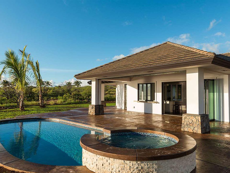 New Hawaiian contemporary cottage on 1 acre with spectacular ocean, mountain, and sunset views in Launiupoko, one of Maui's most sought-after and beloved neighborhoods. This beautiful home is to be completed by spring of 2022 with the highest quality finishings including Sub Zero and Wolf appliances, waterfall kitchen island, and Fleetwood living room/lanai sliding doors allowing for open indoor-outdoor living. Luxury features include over 800 sq. ft. of covered lanai, 770 sq. ft. garage and storage, inviting pool/spa, plus a 500 sq. ft. detached AG building with 1/2 bath and outdoor shower--all complemented by lush tropical landscaping and fruit orchard. Enjoy walking/hiking trails right in your neighborhood, or head the short distance down to Launiupoko Beach Park for family friendly surfing, swimming, and stand-up paddling. Projected to be completed in Spring of 2022. Disclaimer: Sample images shown are of completed home(s) built by the developer and DO NOT depict the actual construction, as this home is currently under construction; developer reserves the right to make changes during the construction, and completed project may deviate from images shown.