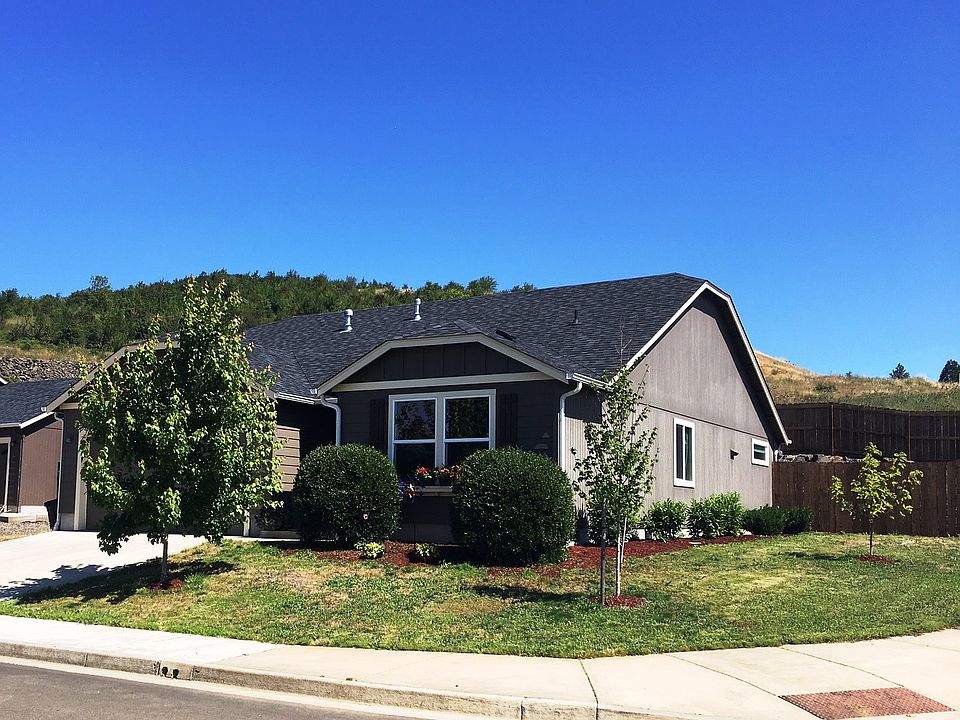 Lovely 3 bedroom 2 bath 1406 sq. ft. home built in 2009. Has double car garage, gas fireplace, fenced backyard that backs up to green belt. Deluxe kitchen with island includes new GE appliances, enjoy spacious open concept living with vaulted ceilings and wide entry hall. Master has dual walk in closets, double vanity and a deep tub. Great neighborhood of newer homes.