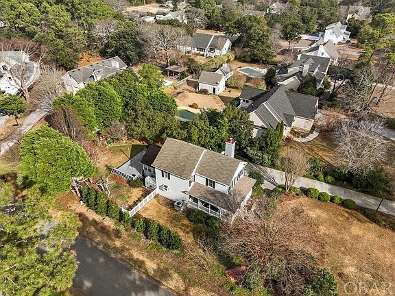 This is the one you have been waiting for. Located on Roanoke Island this charming home has been lovingly revamped over the last two years and is ready for you to move right in. 153 Raleigh Wood beckons you into this farmhouse styled home with its spacious front porch and fenced back yard. The Raleigh Wood neighborhood was established decades ago and has a lovely private pool for its owners and their guests. Entering in to the home you will find a beautiful living room with a wood burning fireplace. From there the hardwood floors will lead right into a formal dining room and then just past the half bath you will enter into the spacious kitchen. The kitchen was revamped including all appliances and flooring just under two years ago. The counter tops of quartz, the gorgeous new back splash and the updated appliances make this an area to be enjoyed by family and friends. Entertaining in this home is a breeze with its ease of flow from the kitchen into the warm wood interior of the den in the back of the house. Look closely and you will see a gorgeous wet bar from The Christmas Shop which has been worked into the decor. From there you can head out on to the porch and enjoy your landscaped, fenced in backyard complete with an outdoor shower. And what a yard it is! In fact, if you like Manteo history there is even a fig tree given by Andy Griffith to a previous owner which stands off to the left side of the porch. Back inside you will head upstairs for a good nights rest. The primary bedroom is spacious with a lot of natural light and a completely renovated primary bath. Be sure to notice the lovely tile surrounding the walk in shower. The other two bedrooms upstairs are also large and have wonderful closet space and share a second full bath. This house also comes with a home warranty!