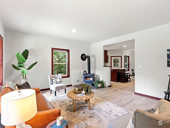 Nestled in a serene, wooded setting off of the iconic Egg & I Rd in Chimacum, this 3 bed, 2 bath cabin on 1-acre exudes tranquility & comfort. Enjoy your mini retreat under the covered porch as you soak in the quiet sounds of birds & nature. Many cozy areas to retreat to inside the home, from the living room w/ wood burning fireplace, to the kitchen & dining room w/ windows that bring the beauty of the outside in, to the primary w/ ensuite full bath & 2 additional bedrooms & full bath. Home has been well maintained & ready for new owner. Newly painted, vinyl plank flooring throughout, extra Frigidaire freezer, septic recently pumped, 50-yr metal roof, 50A generator hookup available, shipping container for extra storage & fiber internet!