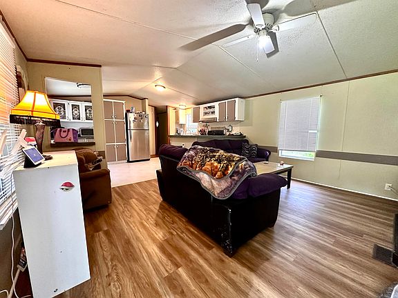 Large lot with 2010 manufactured home. Three bedrooms, three full baths. The master bedroom has two full baths, one with a garden tub and one with a walk-in shower. Covered decks on front and back. Outside storage shed and covered parking area on a concrete slab. Fences backyard. Metal roof.