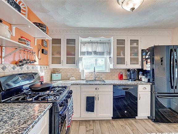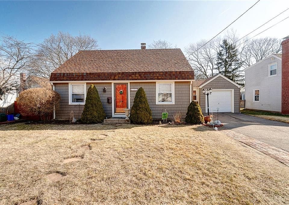 Pride of Homeownership! Well kept three bedroom 2 bath cape style home located in the desirable Pinecrest neighborhood. Exterior features 5 year old architectural shingle roof, vinyl siding, replacement windows, and garage with door opener. Interior features 2 ductless ac units (central ac), renovated kitchen with granite countertops, island, appliances, tons of cabinet space, renovated bathrooms on 1st and 2nd level, modern ceramic tile and hardwoods throughout, finished living space in the basement, updated plumbing, electrical, && mechanicals (3 yrs boiler 4 years hot water tank). The homeowner's favorite space is their backyard which they have coverted into a family retreat. The backyard is landscaped, completely fenced in and features above ground pool with 1 year old liner and pump, 2 staggered decks with cabana, patio, shed, seperate fenced in dog run, and green grass in the warmer months. The enclosed porch had been converted into an extension of the kitchen with extra cabinetry and been used to host many pool parties. Excellent central location close to highway and train access. Tons of shopping and restaurants located on Newport Ave towards East Providence or Massachusetts. Purchase this home just in time to enjoy the above ground pool and backyard ALL SUMMER!