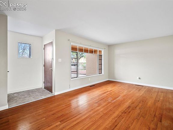 Let me be the first to say Welcome Home! The Pikes Peak and mountain views from this charming stucco home will leave you in awe! The covered front porch opens to the living room that is perfect for entertaining! As you walk in you will be greeted by a nice open space, tons of natural light, original hardwood floors, and a view to the backyard. Looking for 3 bdrooms? Don't be fooled by only 2 bedrooms. As most have done in the neighborhood, you can easily turn the dining area into a third bedroom with a closet and still have a large eat in kitchen. New flooring throughout the home. New lighting in the home. New paint throughout. Newer high end roof, newer sewer line with cleanouts, and newer furnace. Miracle Method just finished the shower surround and tub in the bathroom. The original hardwoods are still under the brand new carpet in the bedrooms. You will love the private fenced backyard, huge patio, newer fencing in areas, a very large 8X12 shed with a loft area and power, and an attached 1-car garage! Upgraded electric panel in 2005. There are parks and shopping nearby! If you like it cool, this home has a swamp cooler to make the home extremely comfortable on those hot summer days. Large laundry area that walks out to the huge backyard with a patio. Alley behind the home to bring those toys into the backyard if needed. This home is conveniently located minutes from downtown and I-25. This home is move-in ready and just waiting for a new owner to begin making new memories.